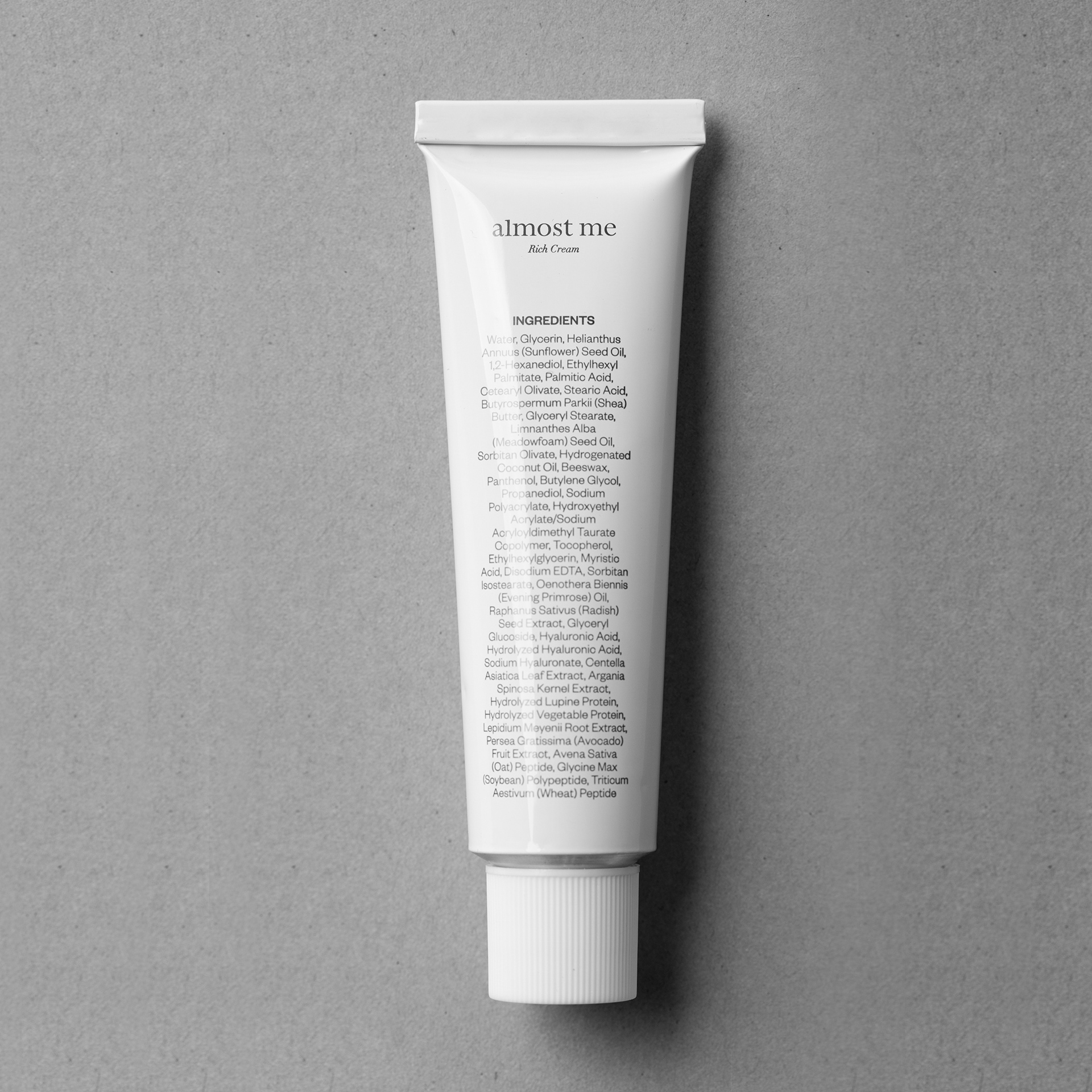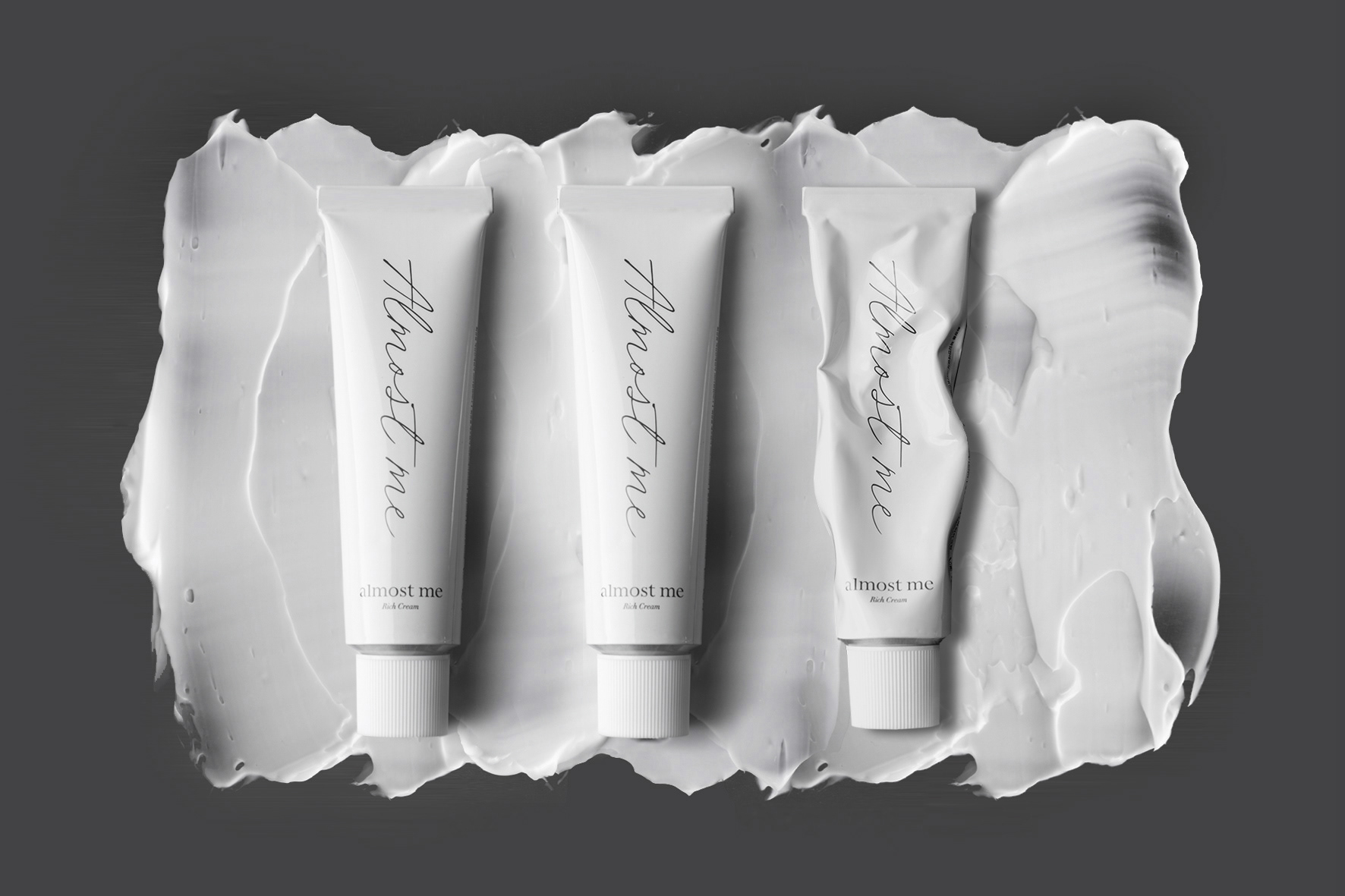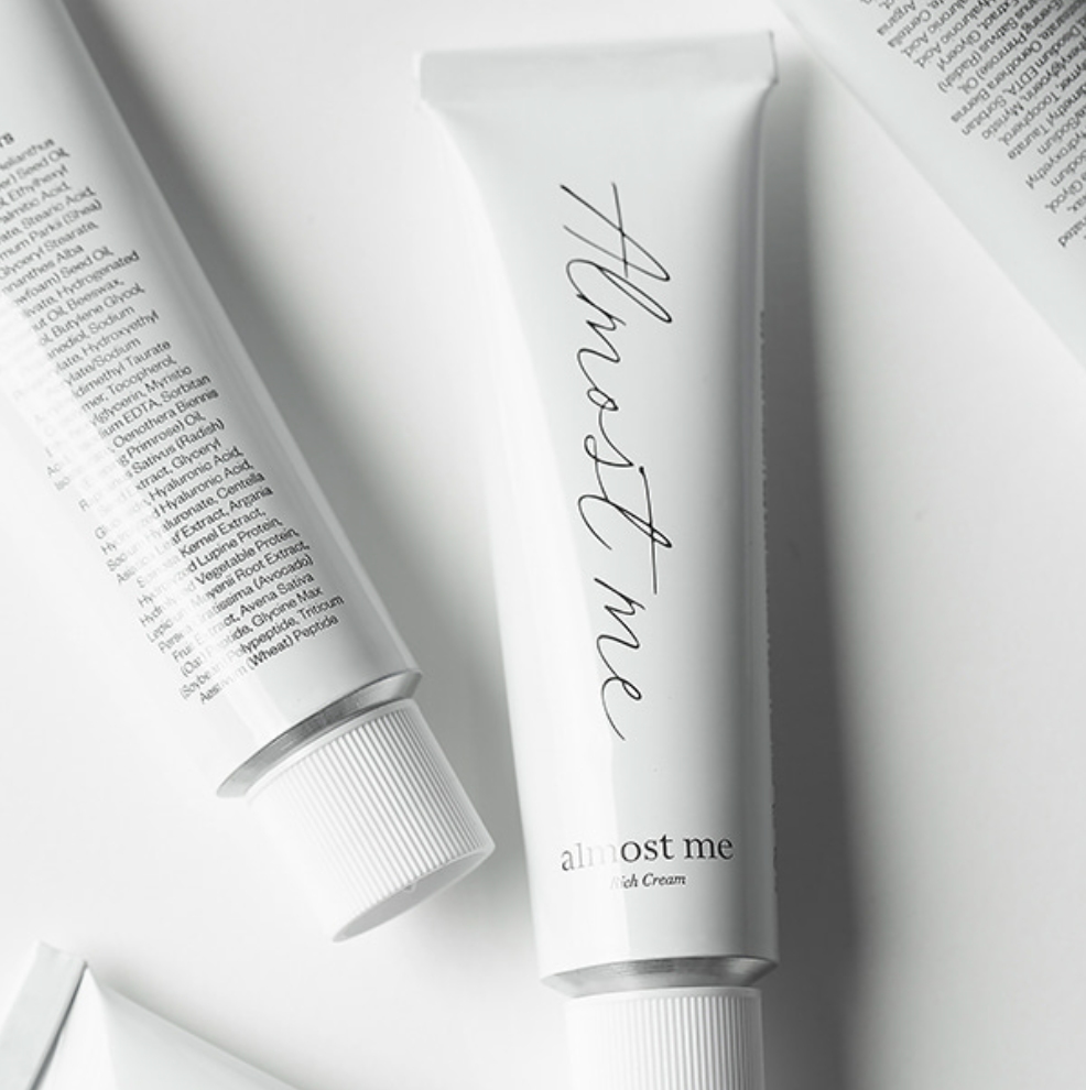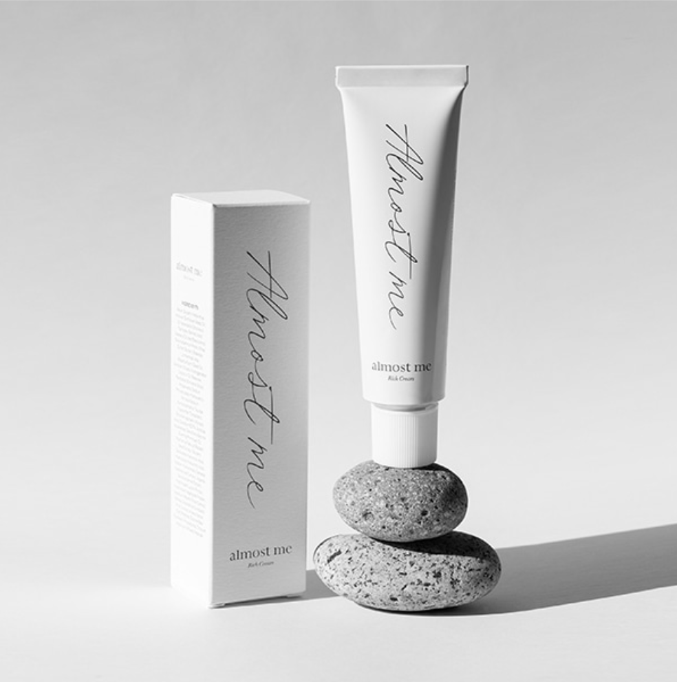 올모스트미는 식물성 단백질 콤플렉스와 판테놀 등의 성분으로 이루어진 피부저자극 테스트를 완료한 민감한 피부를 케어해주는 스킨케어 전문브랜드 입니다. 제품디자인은 블랙과 화이트 컬러를 사용하여 심플한 느낌을 주었으며, 용기에 전성분을 디자인적으로 표기하여